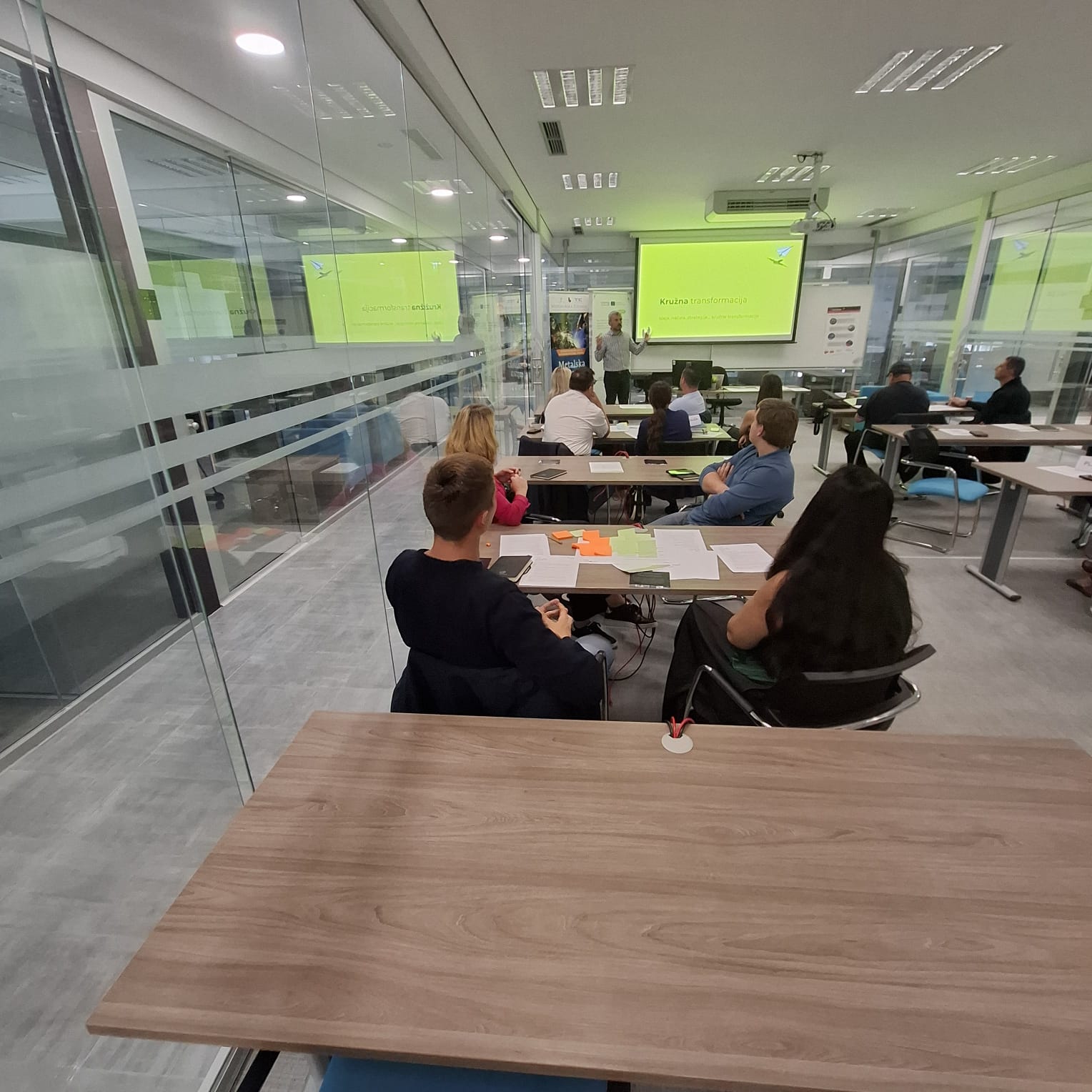 Sudionici su uz vodstvo iskusnih mentora, kroz praktičan rad na primjerima stvarnih poduzeća, procijenili razinu uvođenja kružnog gospodarstva te zajednički izradili prijedloge za njegovu nadogradnju koristeći napredne i kreativne metodologije. Sve skupo okupilo se više od 20 stručnjaka iz raznih sektora te su kroz inspirativne prezentacije i timski rad razvijali održive modele poslovanja prema design thinking principima s naglaskom na učinkovitost, inovacije i veću konkurentnost.