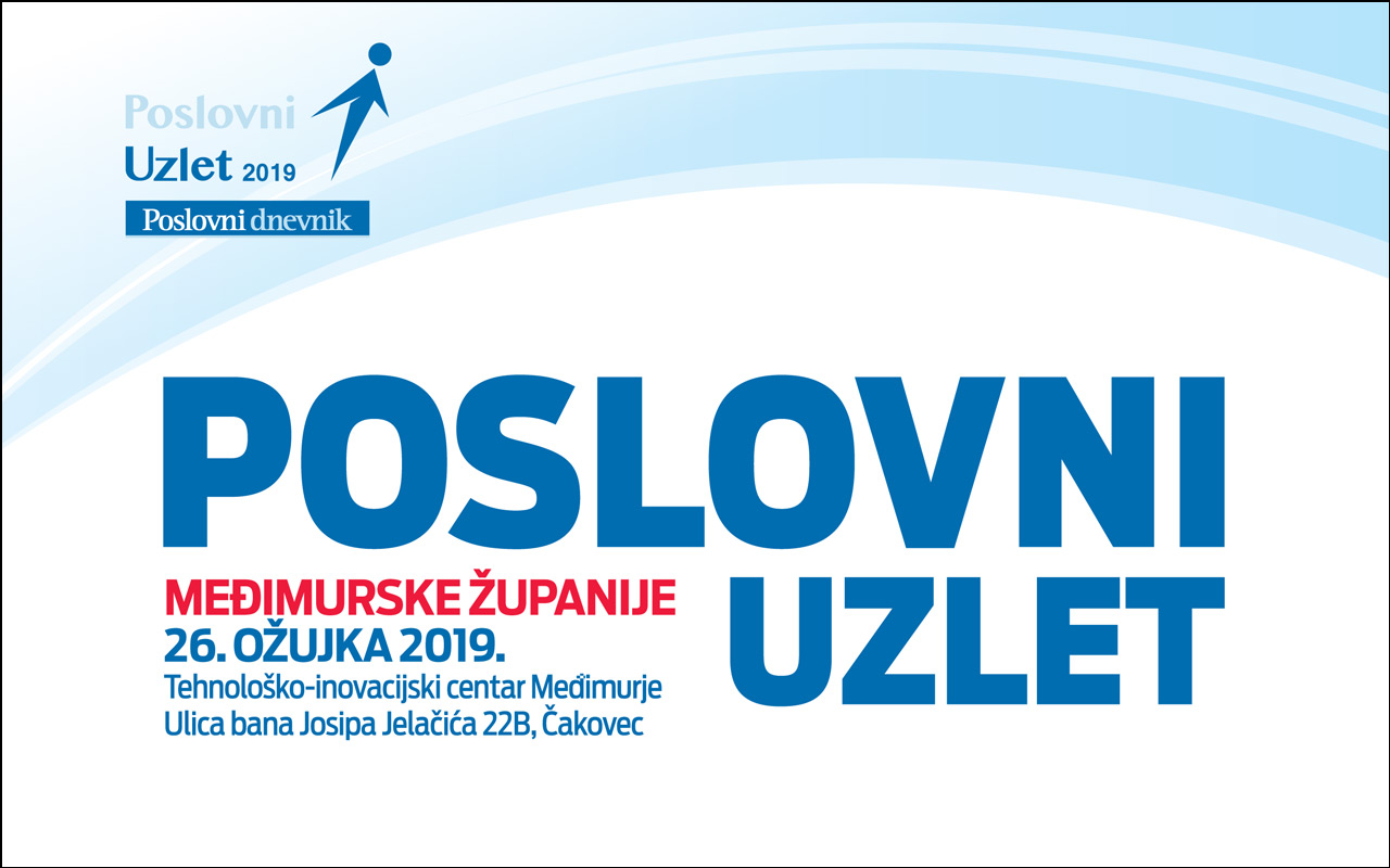 Poslovni uzlet Međimurske županije održat će se 26. ožujka 2019. u Tehnološko-inovacijskom centru Međimurje u Čakovcu (Ulica bana Josipa Jelačića 22).