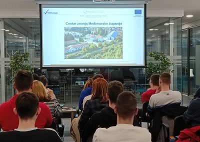 Slijedilo je predavanje o aditivnoj proizvodnji, koje je održao Zoran Kadežabek, inf., zaposlen kao ključni stručnjak u Odjelu za Internet stvari Metalske jezgre Čakovec. Aditivna proizvodnja sve je više prisutna u radnim granama djelatnosti. Proizvodni proces započinje konstruiranjem 3D modela računalnim CAD programima za modeliranje ili skeniranjem nekog objekta 3D skenerom na temelju čega dobivamo njegov digitalizirani prostorni oblik. Zatim se model pretvara u niz horizontalnih poprečnih presjeka koji se 3D pisačem otiskuju sloj po sloj do konačnog proizvoda. Tim se postupcima jednako uspješno mogu izraditi prototipovi, kalupi i alati velike preciznosti te funkcionalni dijelovi spremni za upotrebu. Prezentiran je vodeći sustav za direktnu digitalnu proizvodnju iz polimera – Stratasys F900, raspoloživ u Metalskoj jezgri. Dani sustav koristi FDM (Fused Deposition Modeling) tehnologiju. Dijelovi su građeni sloj po sloj od polimernog materijala koji u obliku žice prolazi kroz mlaznicu u kojoj se zagrijava i tali tijekom izrade proizvoda materijal se ekstrudira i polaže na željena mjesta u vrlo finim slojevima. Njegov radni volumen (ŠxDxV) je: 914,4 mm x 609,6 mm x 914,4 mm. Više o 3D pisaču Stratasys F900 može se pronaći na: https://www.stratasys.com/en/3d-printers/printer-catalog/fdm-printers/f900-printer/. U sklopu prezentacije prikazani su primjeri 3D ispisa napravljeni u Metalskoj jezgri Čakovec.