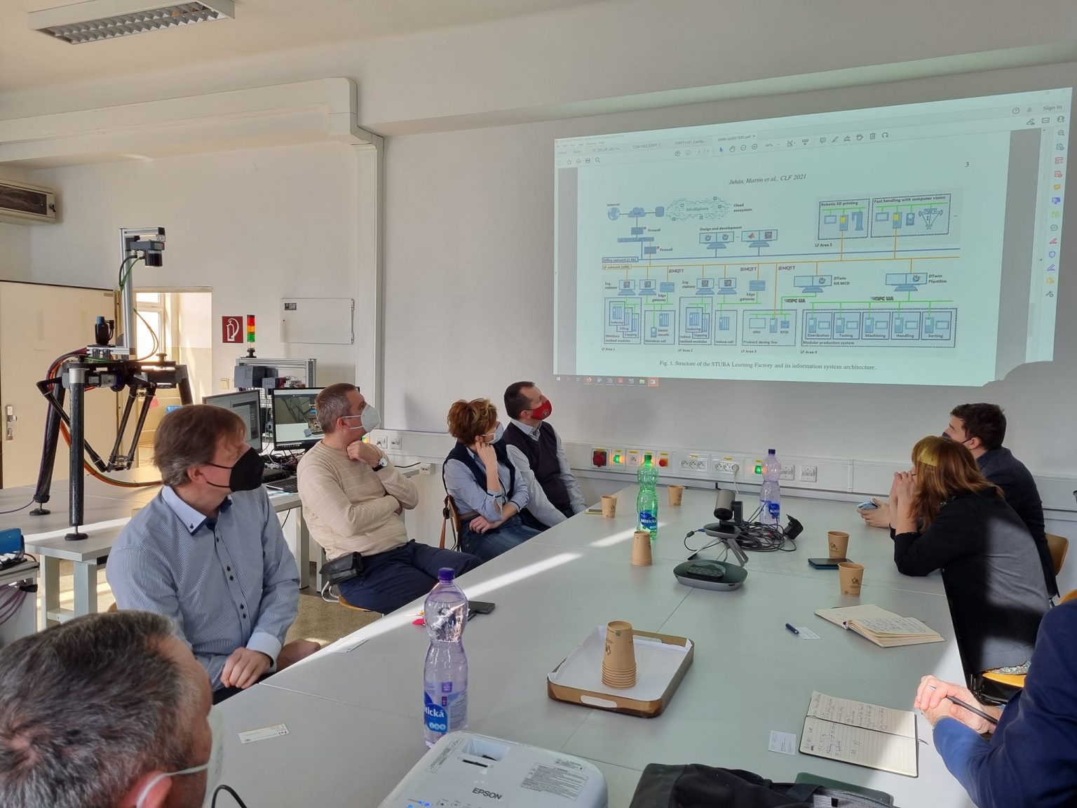 Studijsko putovanje počelo je u četvrtak 3. ožujka posjetom Fakultetu strojarskog inženjerstva Slovačkog tehnološkog sveučilišta u Bratislavi gdje je održan sastanak s dr. sc. Martinom Juhasom voditeljem industrijske automatizacije pri Institutu za automatizaciju, mjeriteljstvo i primijenjenu informatiku i suradnikom na Institutu, dr. sc. Martinom Gulanom. Domaćini su predstavili rad laboratorija za automatizaciju s fokusom na industriju 4.0 i projekt FactoRIS – Learning Factories for Digital Transformation of SMEs financiran u okviru EIT Manufacturing programa.