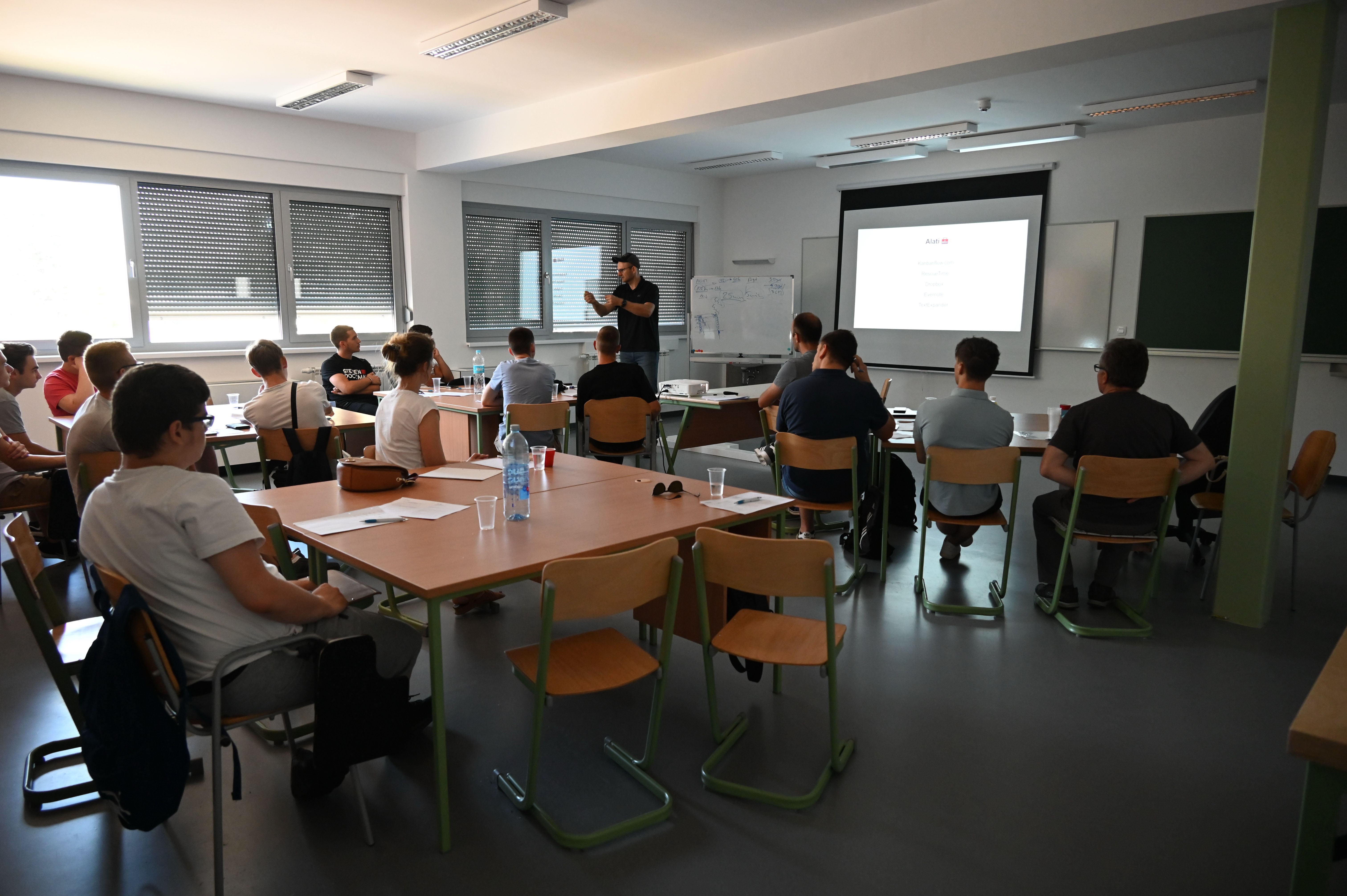 Relevantno znanje o pokretanju poduzetničkog pothvata sudionici su imali priliku usvojiti u srijedu 28. lipnja. Stručnjaci iz TICM-a, Ivan Plačko i Sana Đukes približili su im proces pokretanja poduzetničkog pothvata i poslovnog planiranja te dali pregled mogućih izvora financiranja. Direktor TICM-a, Ivan Plačko, dotaknuo se razloga pokretanja poduzetničkog pothvata, karakteristika (ne)uspješnih poduzetnika, osnova SWOT analize te je predstavio put od ideje do tržišta. Sana Đukes, pomoćnica direktora TICM-a, temeljem dugogodišnjeg iskustva rada s poduzetnicima, učenicima je dala praktične savjete o tome na što je sve potrebno obratiti pažnju prilikom osnivanja poduzeća.